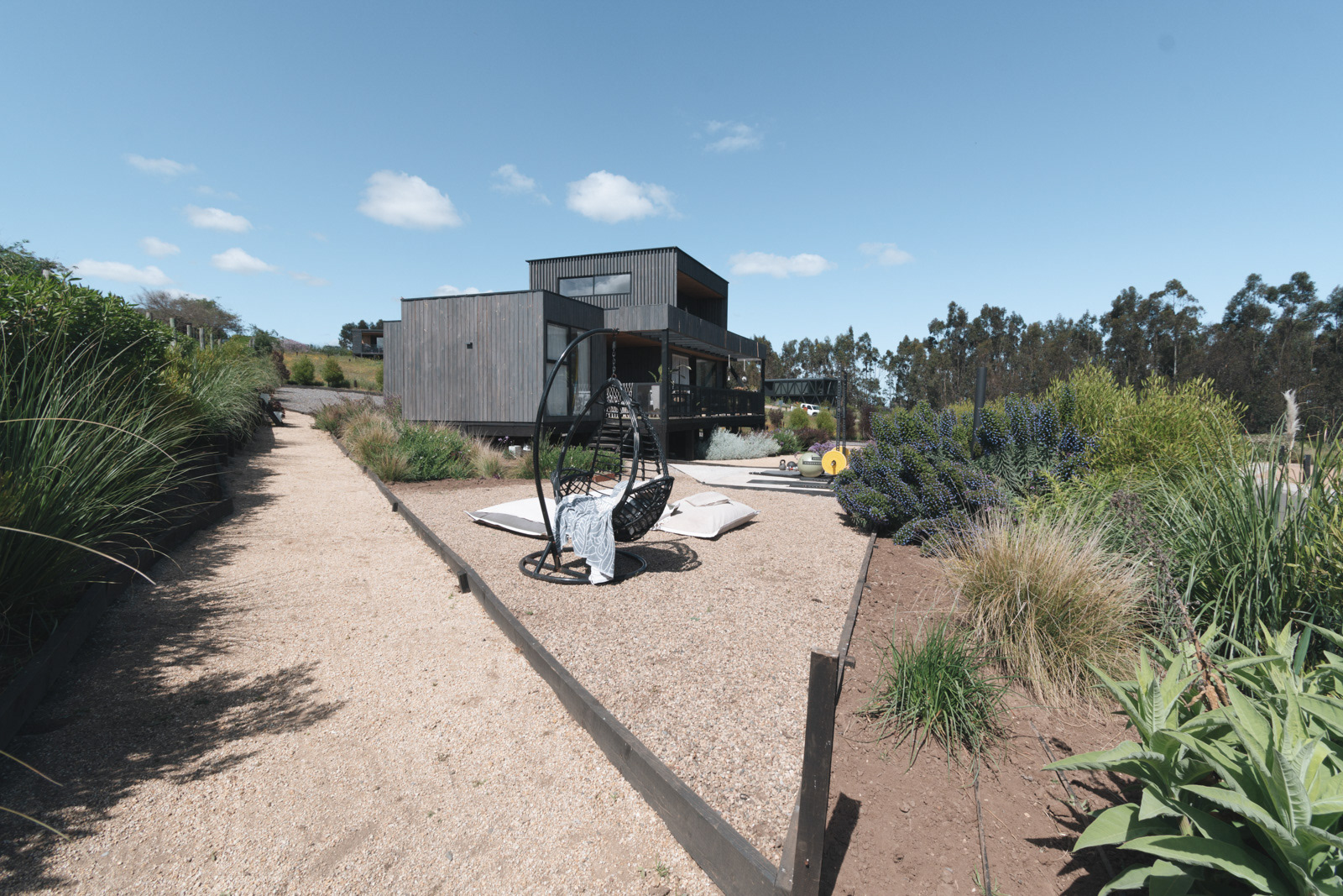 Proyecto de paisaje enfocado en especies nativas y exóticas de bajo requerimiento hídrico, apuntando a una eficiencia en el uso y consumo del agua. Se busca una mezcla entre especies para lograr una mayor riqueza debido a una mayor diversidad, donde se apunta a crear comunidades vegetales que sean capaces de beneficiar el ambiente del sector. Algunas especies además atraen insectos benéficos, pájaros, mariposas y abejas, lo cual genera un núcleo de vegetación que se conecta con el entorno natural local.
